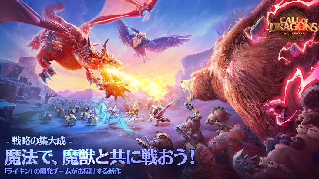 「コール オブ ドラゴンズ」は多彩な戦略バトルに巨大モンスターの手なずけ、ヒーロー育成&同盟テクノロジーなど、やりこみ要素満載のシミュレーションゲームだよ!戦況を見極めてユニットを配置し、最強コンビを編成すれば、圧倒的な爽快感を味わえるはず!さあ、君もドラゴンの呼び声に応えて、戦場に飛び込もう!
